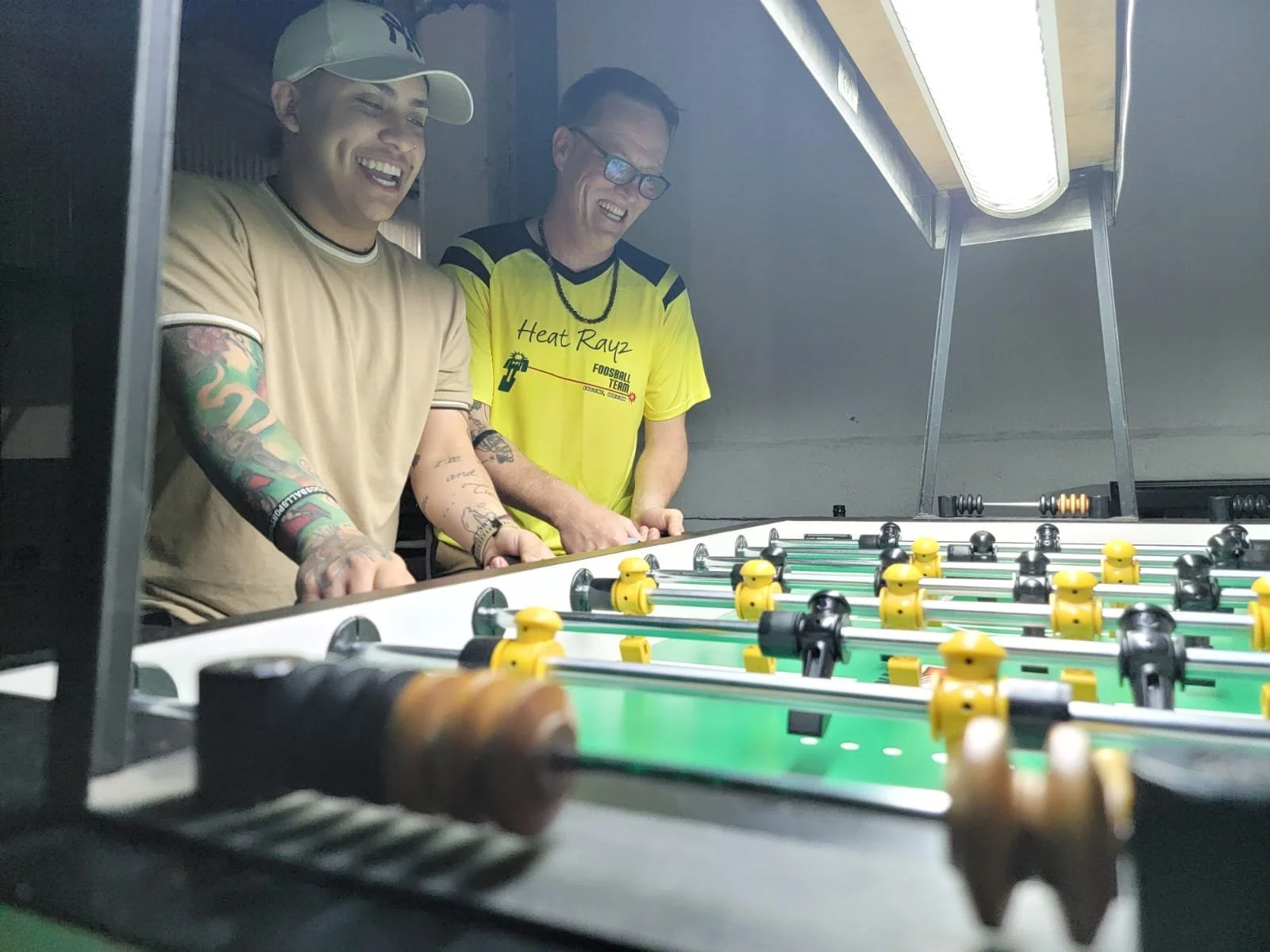 I love the sport of foosball! Particularly as the mediation of our digital age accelerates, it feels good to have activities that simply must be physically engaged to be experienced fully. Some of our members are brand new to the sport, some of us use foosball as a mindfulness discipline, some for competitive success, but most of us are just in it for the fun! Whether you prefer the relaxed feel of play at the club (which focuses on newer players), or the competitive heat of the Heat Rayz team, (which practices for tournaments nationally and internationally), or if you want to do a little of both, reach out and let us know! Or if you know someone who used to love foosball but somehow lost their foos friends, send them our way!